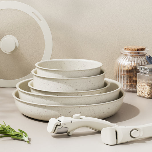 [BIG DISCOUNT!] Bazova Ceramic Nonstick 9-Piece Cookware Set with Removable Handles - Cream White